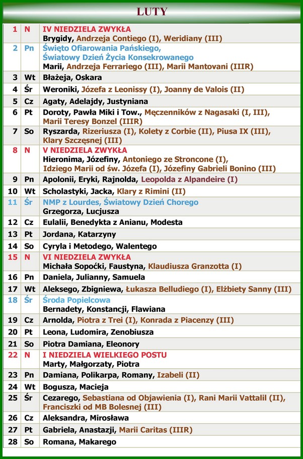 17 lutego - Łukasza Belludiego (I), Elżbiety Sanny (III)