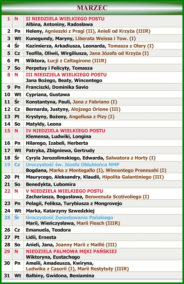 30 marca - Ludwika z Casorii (I), Marii Restytuty (III R)
