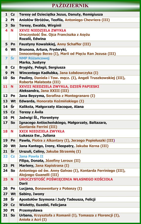 10 października - Daniela i Tow. męcz. (I), Angeli Truszkowskiej (III), Roberta Malatesta (III)