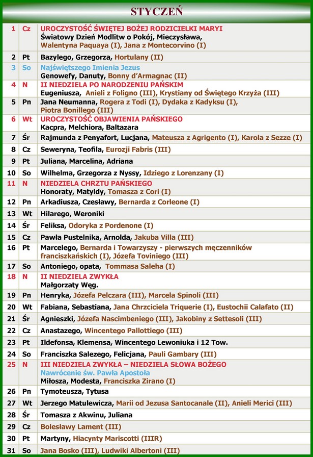 1 stycznia - Walentyna Paquaya (I), Jana z Montecorvino (I)